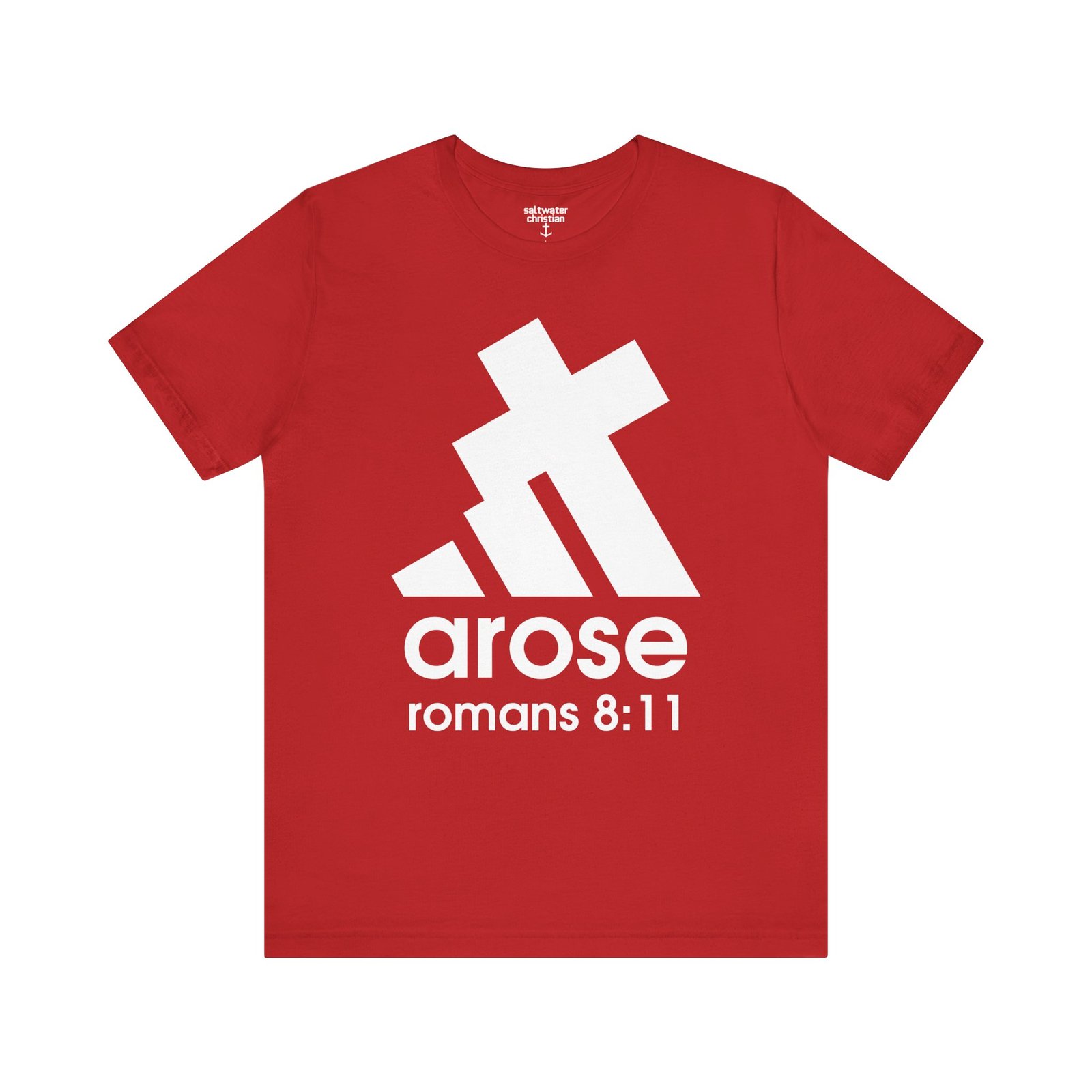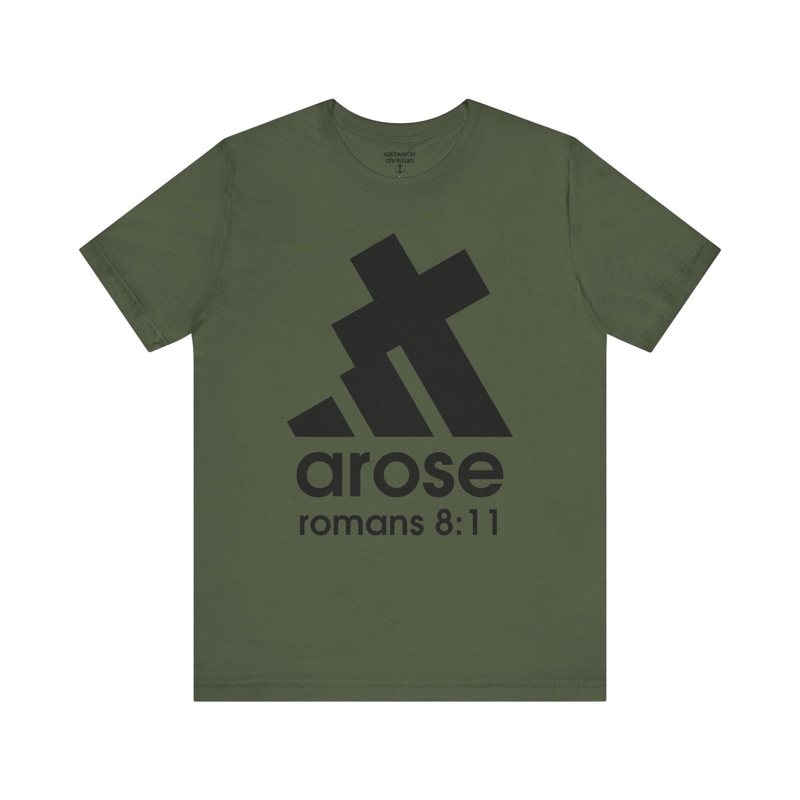 Celebrate your faith in style with Arose, a powerful Christian parody inspired by Adidas. Featuring Romans 8:11, this shirt reminds you of the transformative power of Christ’s resurrection: “If the Spirit of Him who raised Jesus from the dead dwells in you, He who raised Christ Jesus from the dead will also give life to your mortal bodies through His Spirit who dwells in you.” The iconic three-stripe design is reimagined to symbolize the Holy Trinity—Father, Son, and Holy Spirit—encouraging you to represent the “Three Lord Life” boldly and faithfully.