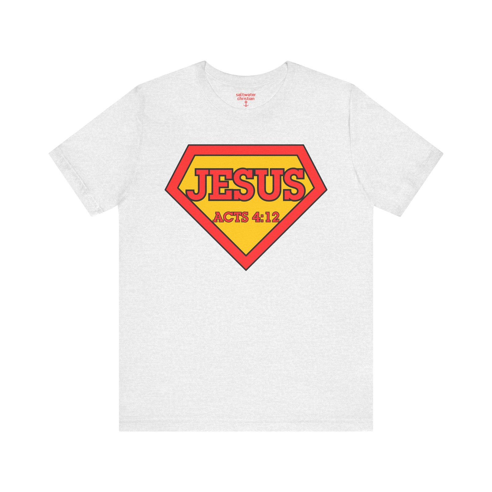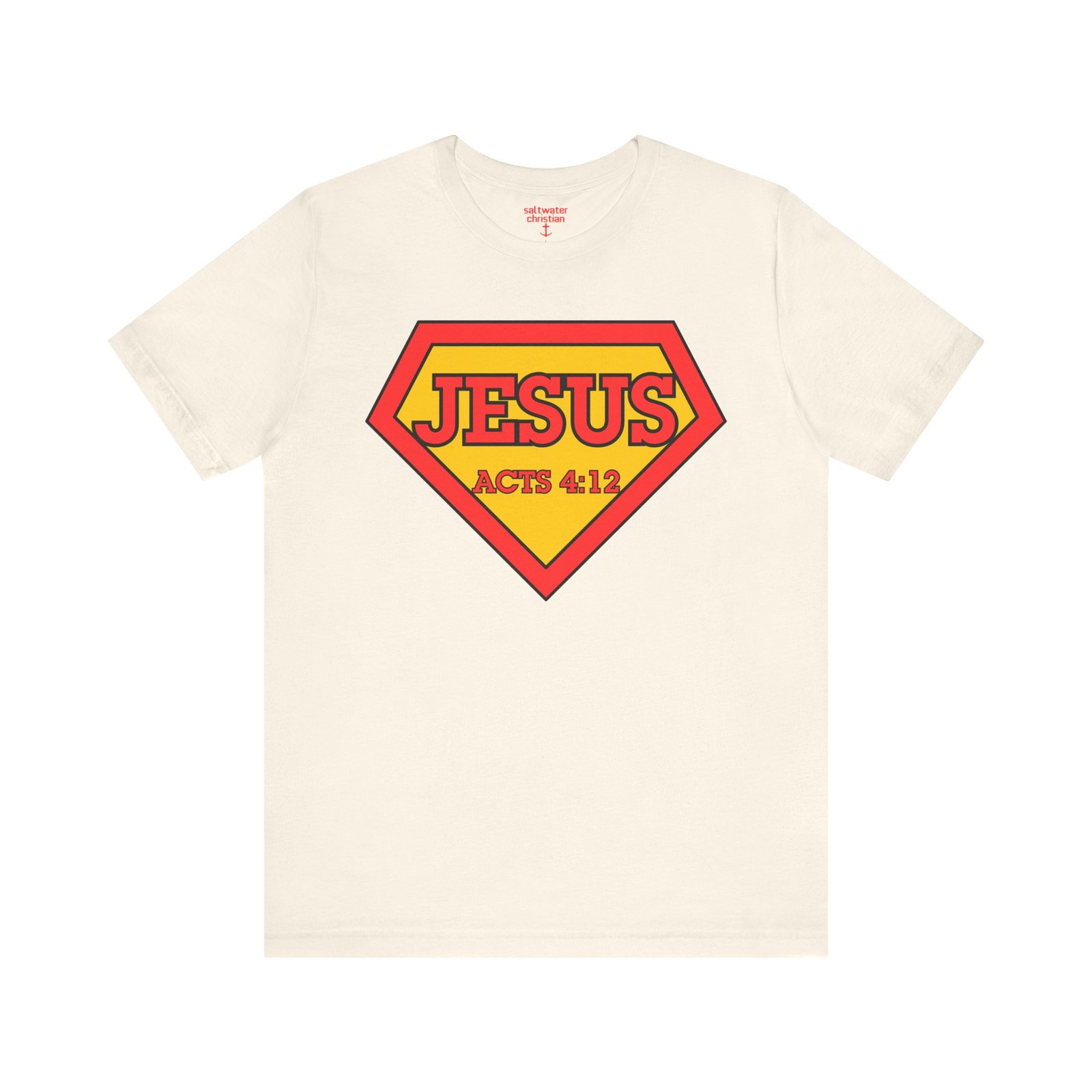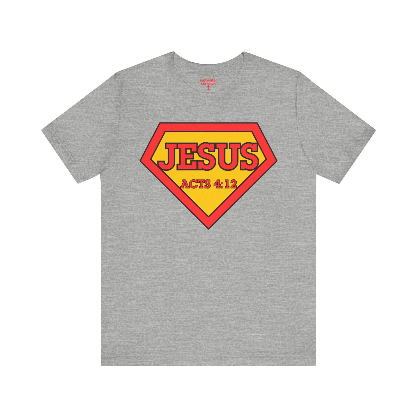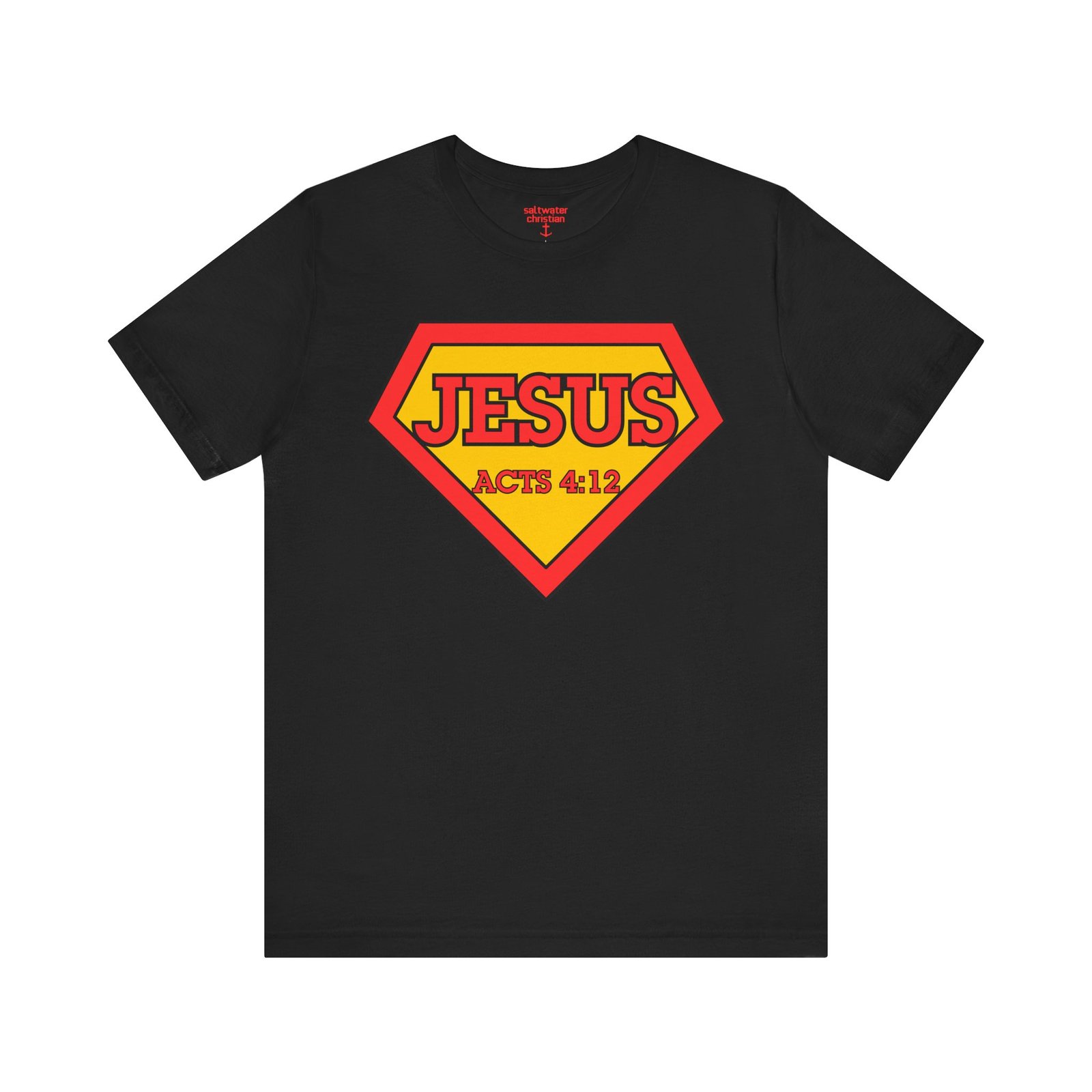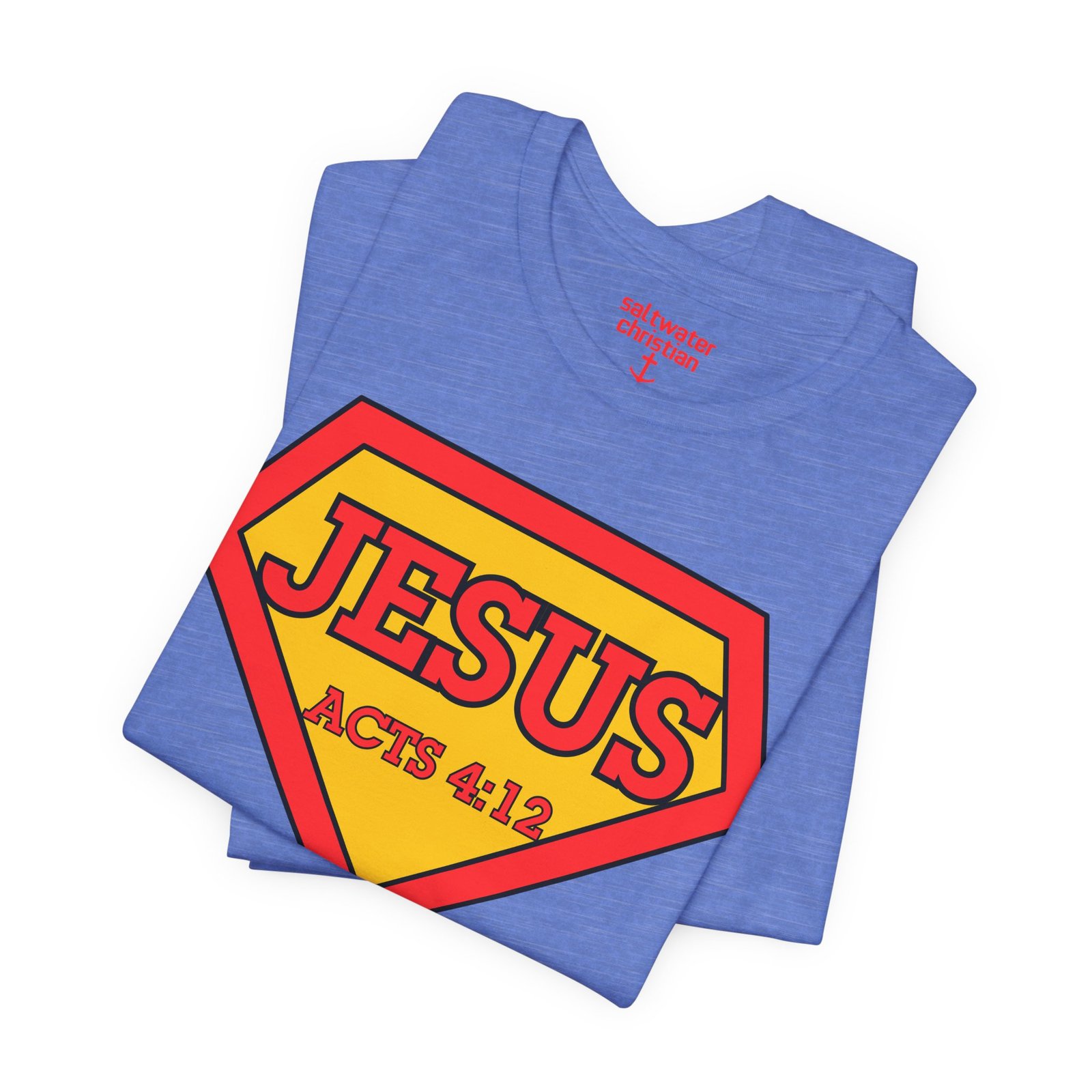 Unleash the ultimate power with this “Jesus” Superman parody shirt. Featuring the iconic Superman logo, but with “Jesus” at the center, this design is a bold statement of the true source of strength and salvation. Inspired by Acts 4:12: “Salvation is found in no one else, for there is no other name under heaven given to mankind by which we must be saved.”